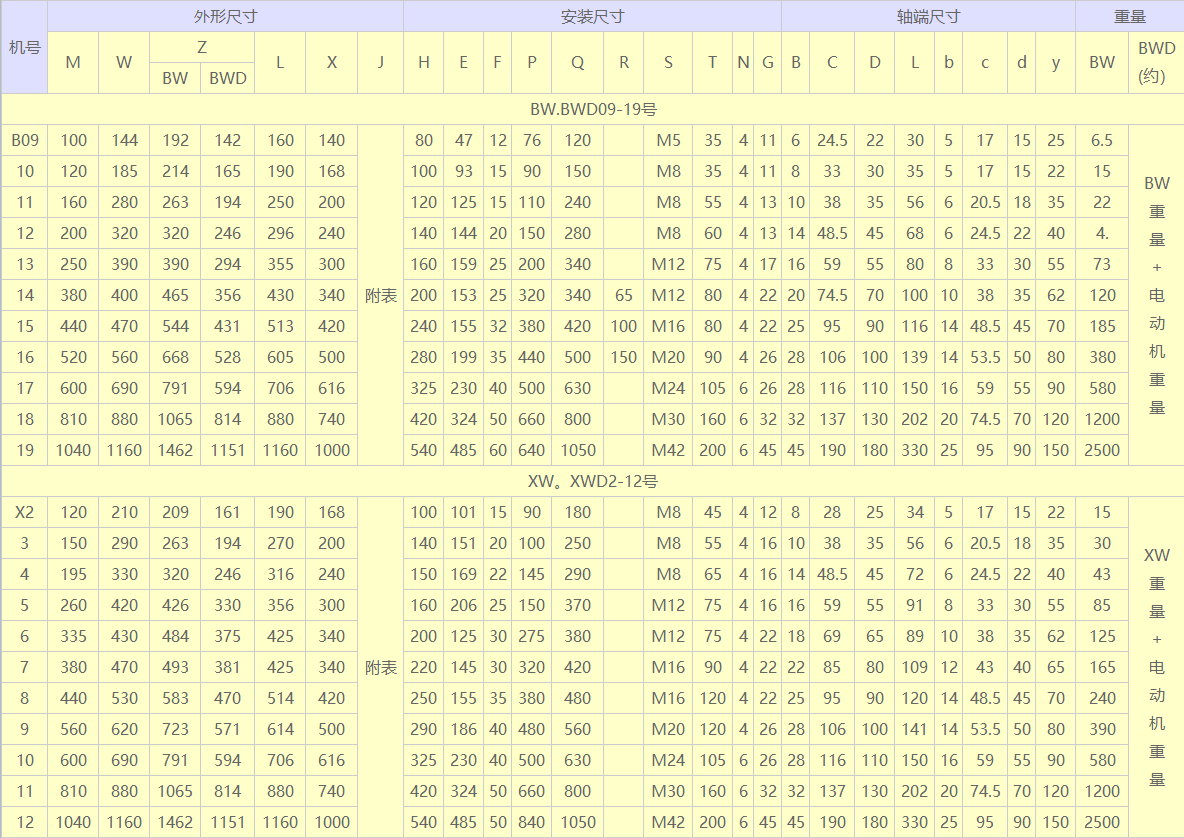 >> BW.BWD XW.XWD型(单级)摆线针轮减速机