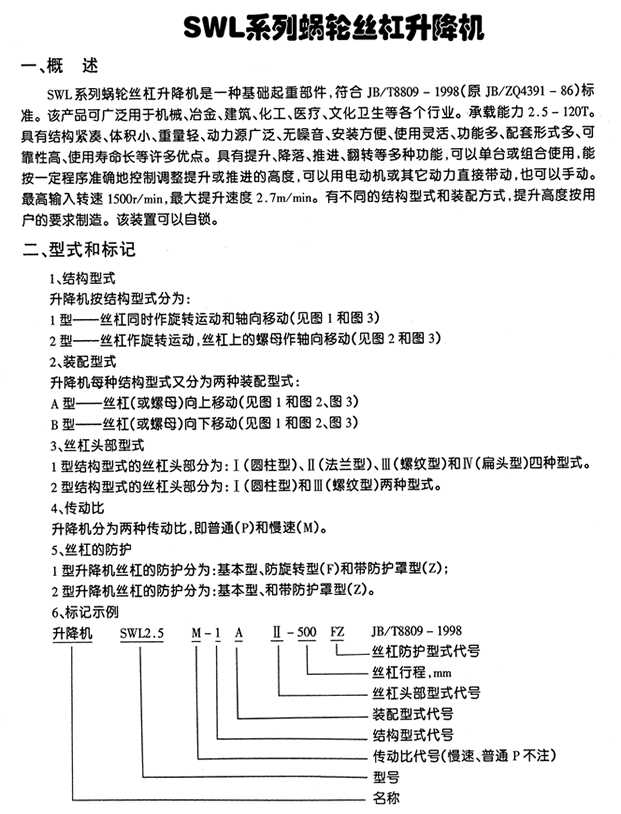 >> SWL、JWM丝杆升降机 提升重量0.5-120吨