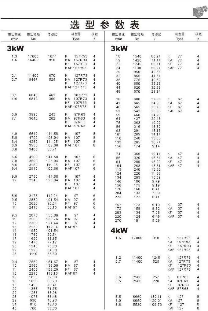 选型参数表3kW和4kW