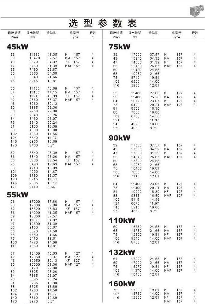 选型参数表45kW (续),55kW ,75kW ,90kW ,110kW ,132kW ,160kW