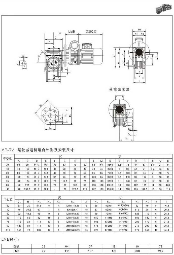 MR-RV蜗轮减速机组合外型及安装尺寸LMB尺寸