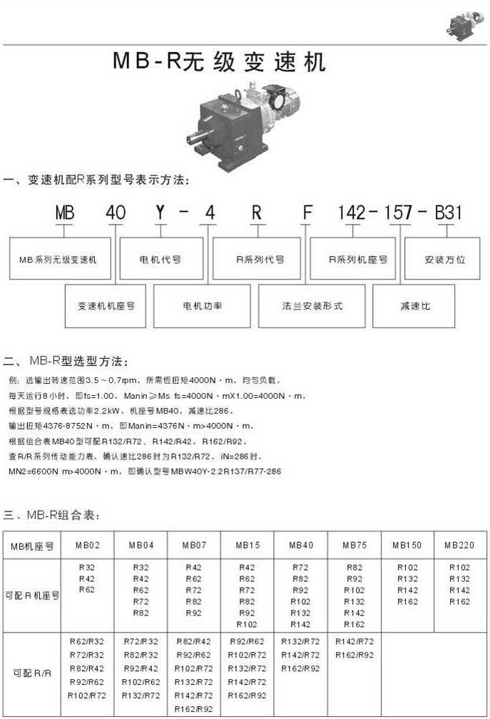 MB-R无级变速机型号表示法选型方法MB-R组合表
