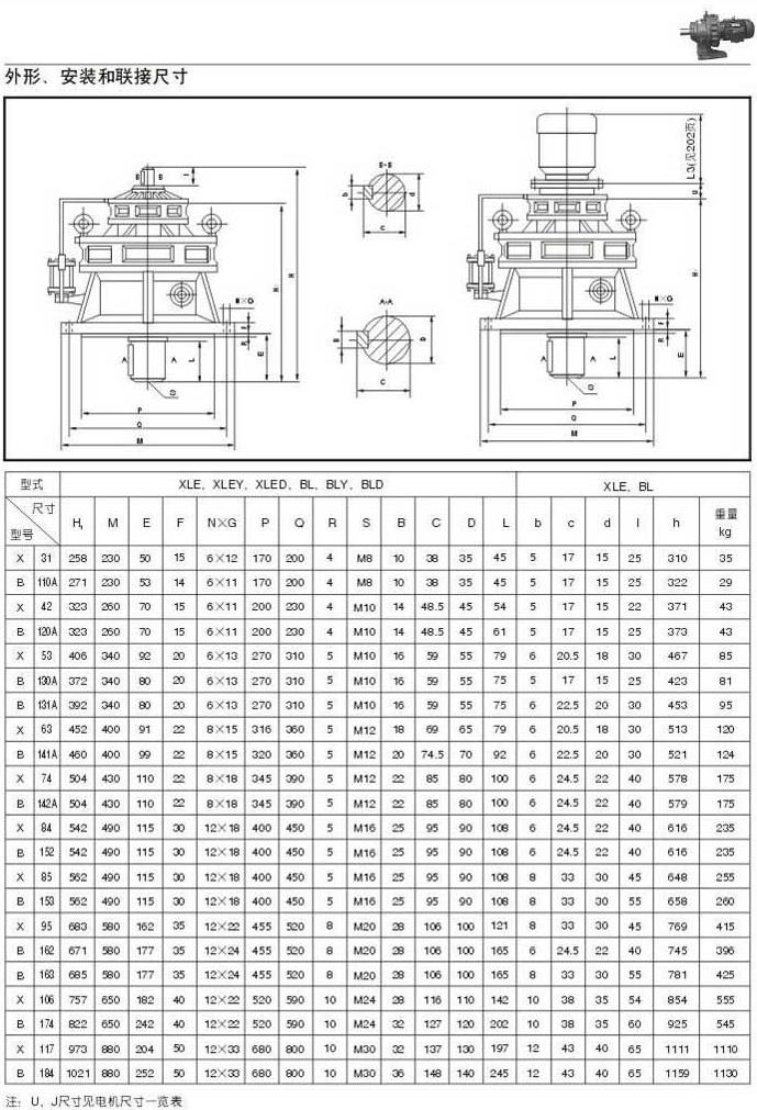 X . B摆线针轮减速机外型图,安装和联结尺寸四 30