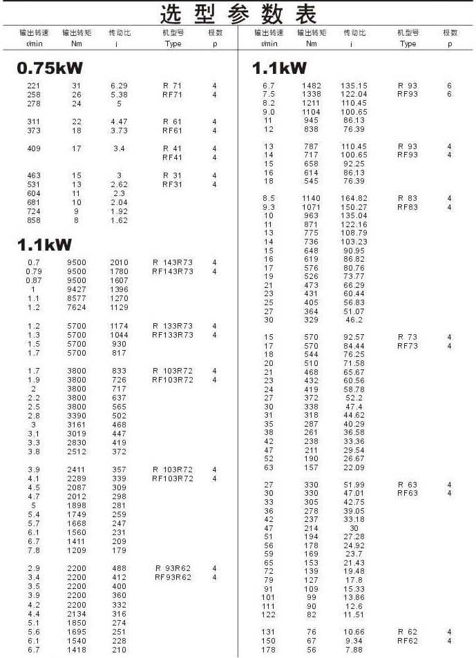选型参数表0.75kW(续),1.1kW