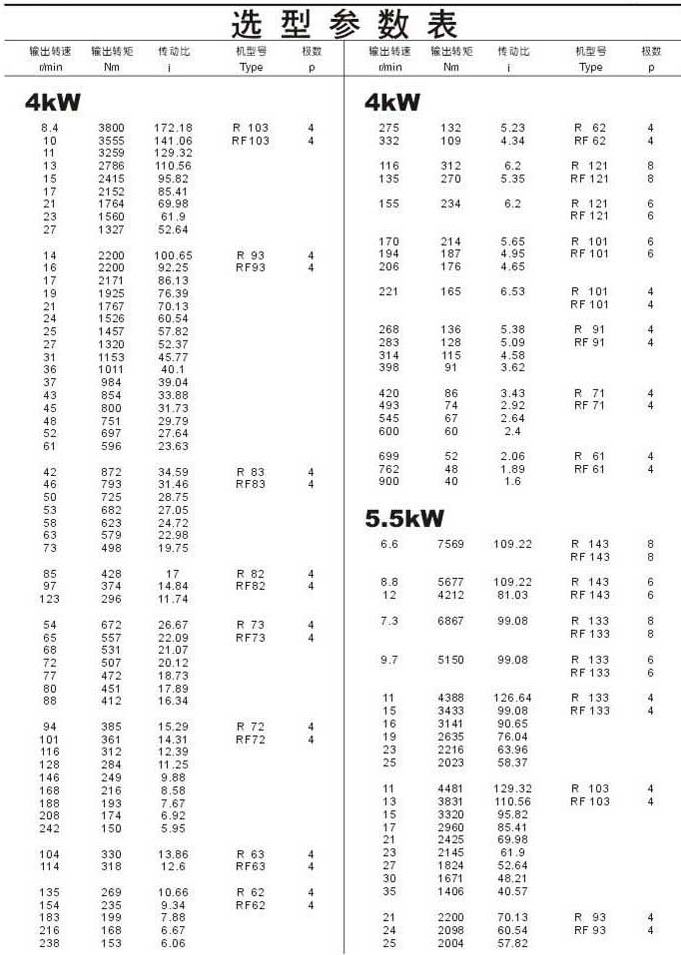 选型参数表4kW(续)和5.5kW