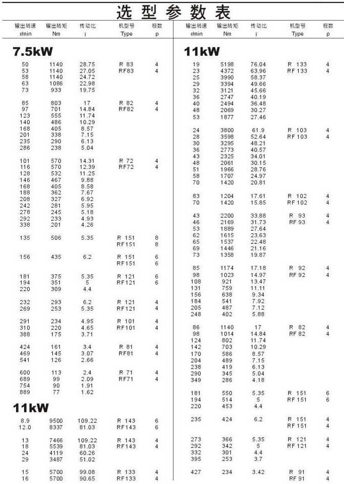 选型参数表7.5kW(续),11kW
