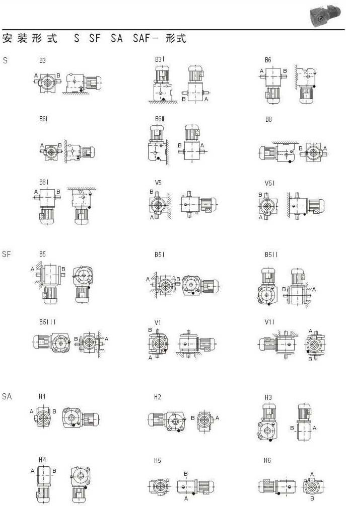 安装形式S,SF,SA,SAF的形式