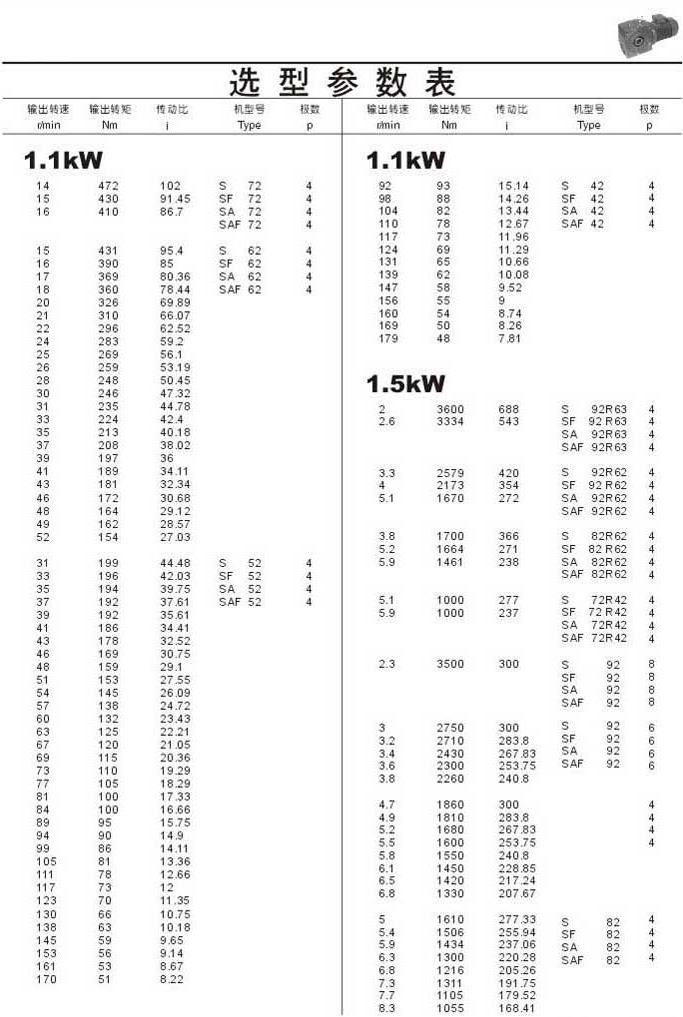 选型参数表1.1kW(续)和1.5kW