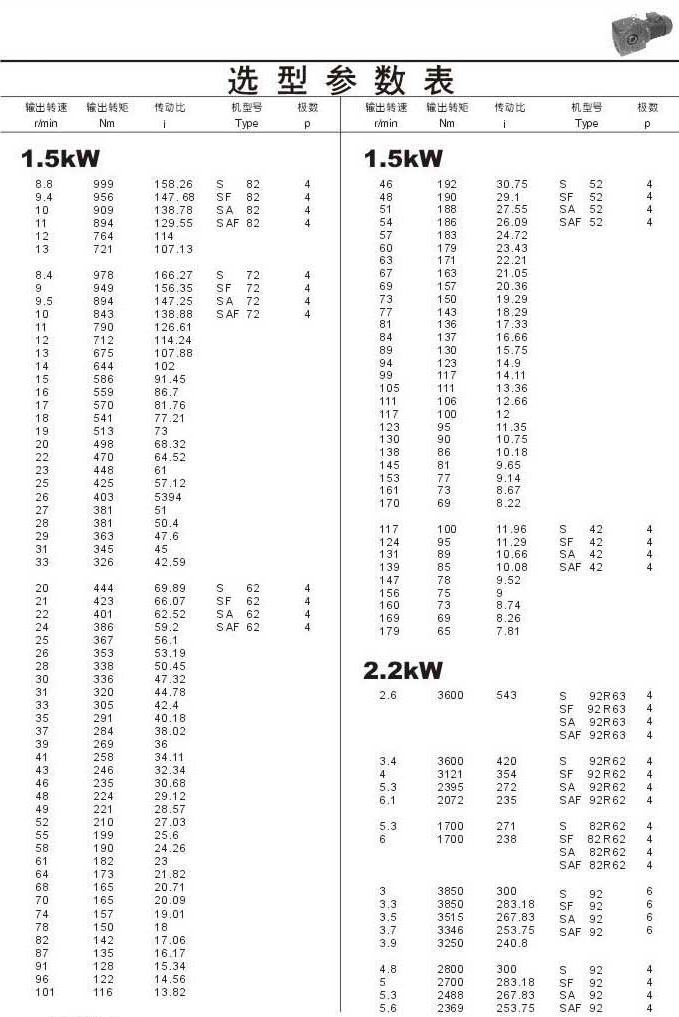 选型参数表1.5kW(续)和2.2kW